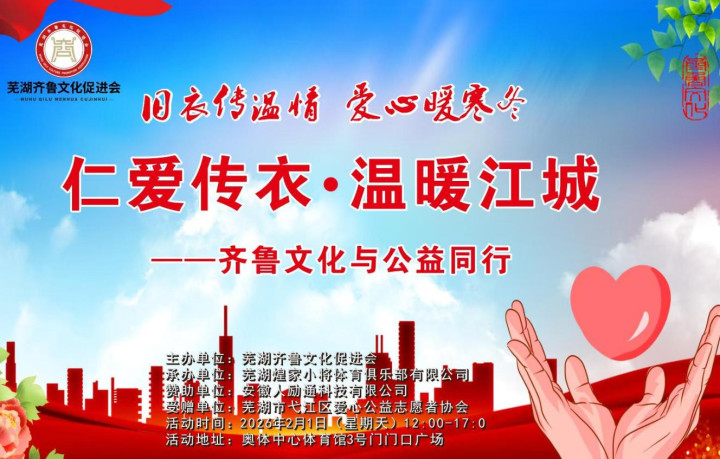 此次“仁爱传衣·温暖江城”公益活动,不仅是芜湖齐鲁文化促进会服务社会的首次重要实践,更是齐鲁文化与皖江文化深度交融的生动写照。活动中,芜湖煌家小将体育俱乐部有限公司作为主办单位之一,全程参与活动策划与执行;安徽人励通科技有限公司作为赞助单位,为活动顺利开展提供了有力保障,三方携手发力,让公益力量更加强大,也让爱心传递更加顺畅。
